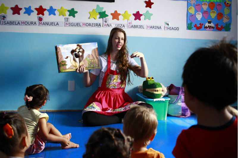 A primeira das histórias, “O sapo bocarrão” narra a trajetória de um sapo que vive se gabando de suas habilidades, mas que no fim se dá mal por haver prometido tanto. “Desde quando eu conheci o livro eu me encantei. Já conto essa história há oito anos e as crianças gostam muito. É engraçada e chama as crianças para se envolverem, elas ajudam a pensar o que o sapo fez de errado”, diz a Tia Mari.