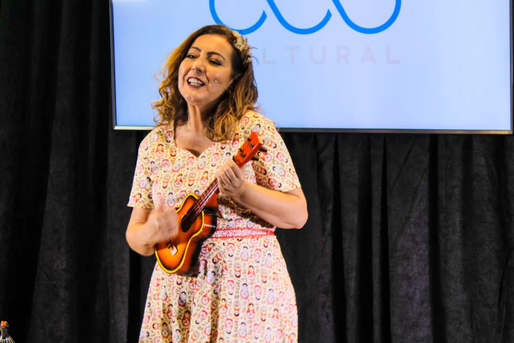 Narradora de contos infantis faz apresentação com direito a cavaquinho nas redes sociais da iniciativa no domingo, dia 19, às 17h
